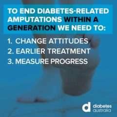 1. Change public attitudes We need to raise awareness of this devastating issue and encourage people to check their feet regularly. Too many Australians living with diabetes are missing out on vital foot checks because they aren’t aware of what they need to do to look after their feet.